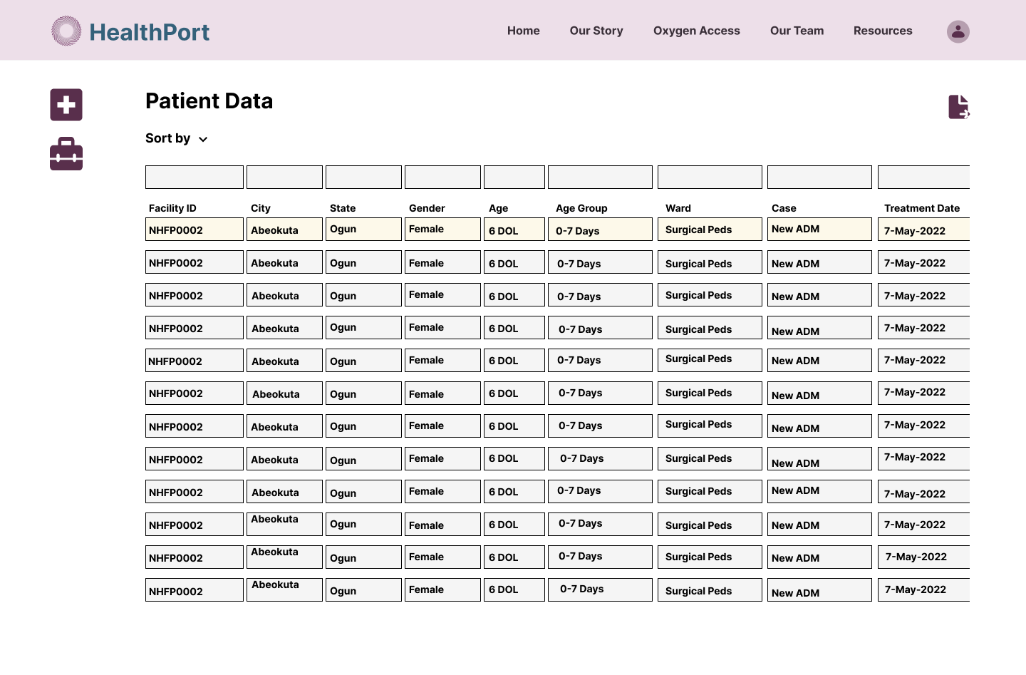 Creating an offline dashboard. One thing that we discussed with HealthPort was that the internet access in Nigeria is lacking and that could be a potential barrier for patients trying to access oxygen.
