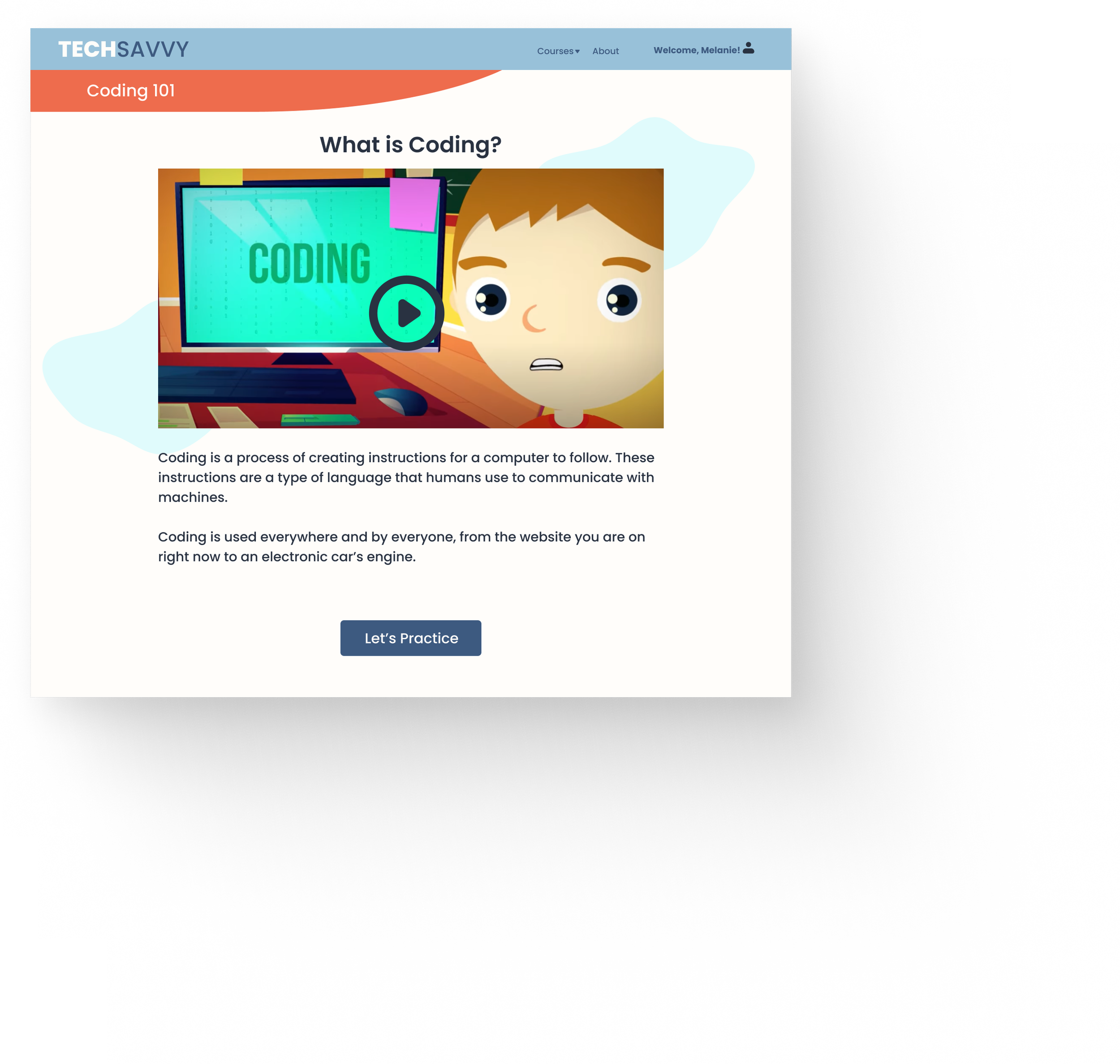 A gamified learning platform with interactive lessons as a way for preteens to easily learn technological skills.